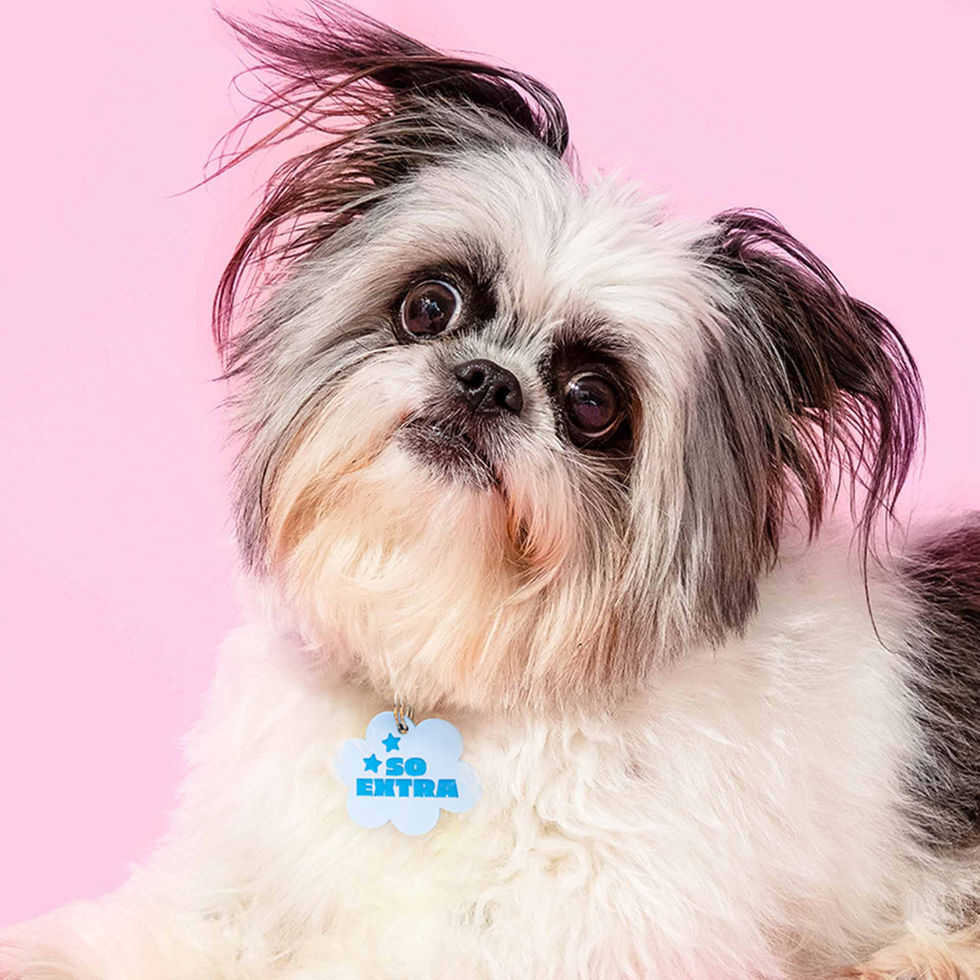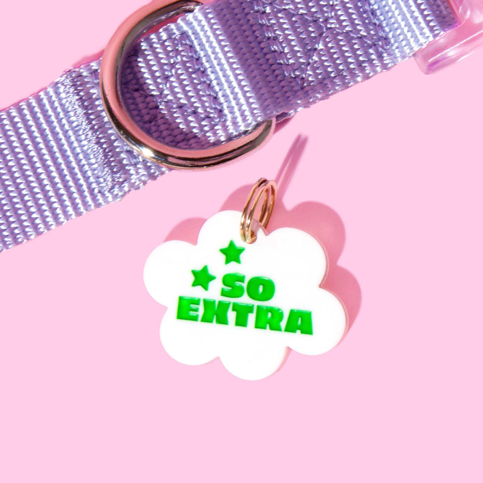 Unapologetically Extra! Available as a one-sided pet charm or upgrade to a double-sided tag with their contact info engraved on the back. Available as a one-sided pet charm or upgrade to a double-sided tag with their contact info engraved on the back. Laser engraved and color-filled to ensure visibility and durability. Waterproof, lightweight and quiet.